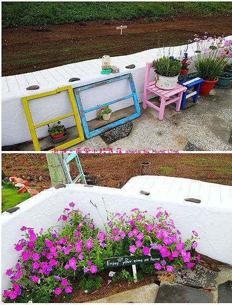 民宿外的布置不馬虎很可愛的小窗、花兒、椅子,