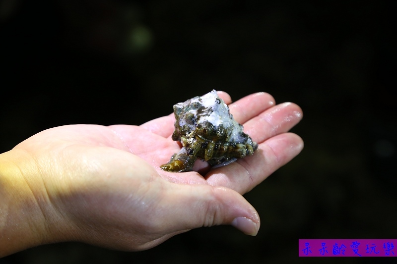 貝殼裡躲藏著一隻寄居蟹,顏色超漂亮的!只是很害羞,潮間帶老師都會仔細解說著這些可愛的小寶貝!