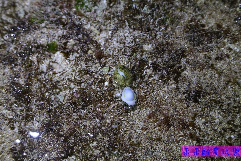 白白的貝類上原本是像上方貝殼有一層保護色,但一驚動它便會變成白色展現,很奇妙呢~
