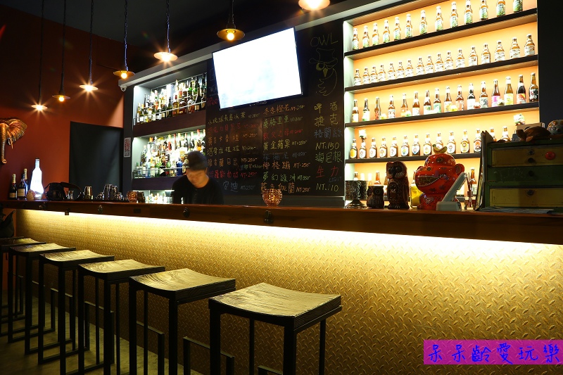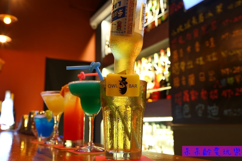 三五好友一起來OWLBAR來個微醺的夜晚吧,店家特製的LOGO很有神祕感,由右開始分別是BEER瑪格麗特、夢幻綠洲、龍舌蘭日出、黃金夏威夷、藍色安迪,選好喜愛哪杯了嗎?