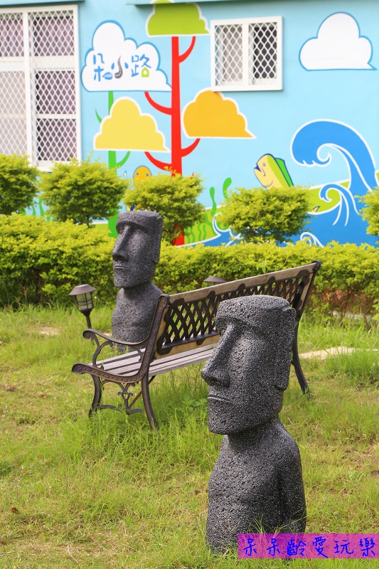 戶外庭園也很有趣,居然有兩座摩艾石像,擺在庭園當中也挺可愛的啦。