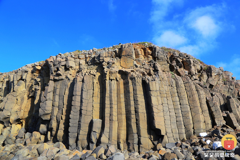 站在直立玄武岩下方,整個人都覺得渺小了許多,下方的石頭一定要小心踩踏,因為有些石頭沒麼穩固喔。