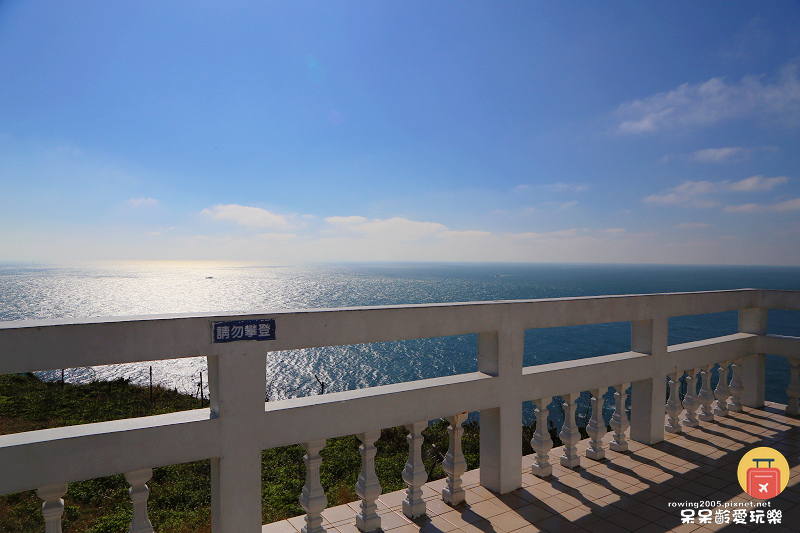 上方還有一處觀景平台,可以看見遠方作業的漁船,還有美麗的大海景色,這裡靠近崖邊所以風勢會比較大喔。漁翁島燈塔為國定古蹟,週圍地區被列為古蹟公園,在民國81年後才開始有開放遊客參觀。