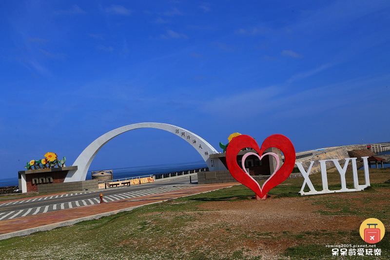 跨海大橋可是遊澎湖必打卡點之一,記得靠近西嶼這側有心型可愛的裝置藝術喔,藍天拍起來更加醒目呢。