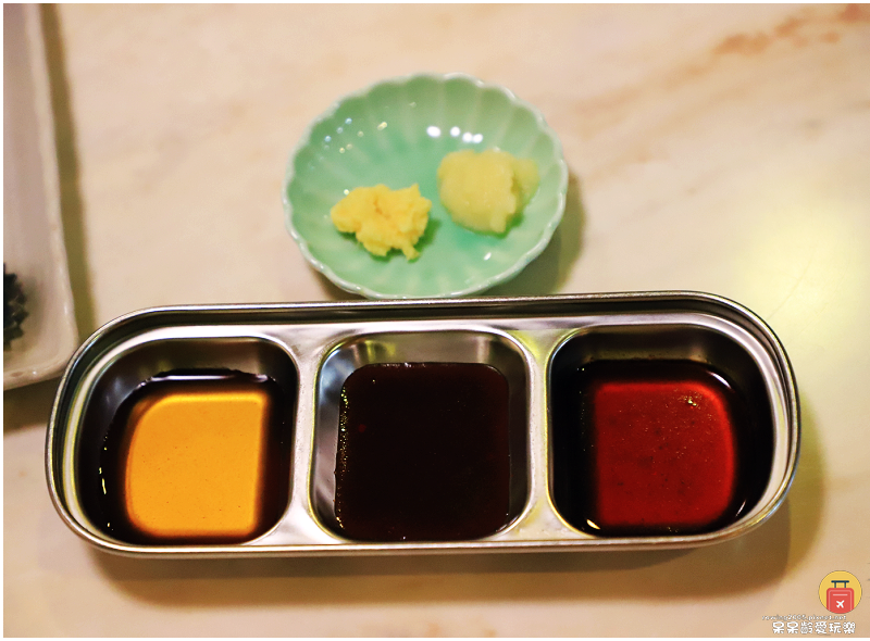 ▲沾醬一樣也很美味,三個沾醬有不同的風味,因為服務人員用日文說明沾醬,所以我們只能自己來試試沾醬味道,沾醬後的燒肉味道更增一層次,吃起來有著沾醬的不同風味,沾醬的和牛燒肉也是很好吃呢。